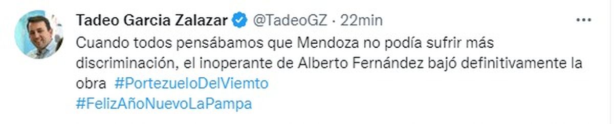 Entre los primeros en reaccionar ante la noticia estuvo el intendente de Godoy Cruz y presidente de la UCR de Mendoza, Tadeo García Zalazar, quien calificó al mandatario de "inoperante".