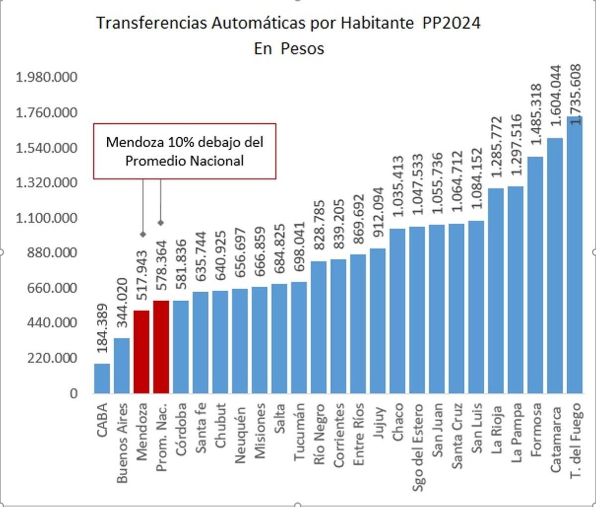 También sostuvo que los fondos per cápita para Mendoza, que son de $517.000, se encuentran 10% por debajo del promedio nacional, que es $578.000.