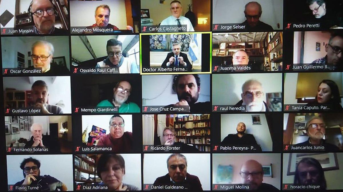Así lo afirmó el jefe de Estado al participar de un encuentro virtual organizado por el Consejo de Asesores de la Presidencia, bajo el título "Para pensar el Frente de Todos", que fue coordinado por los dirigentes Ricardo Forster, Eduardo Valdés y Alejandro Mosquera, y del que participaron referentes de todos los partidos y movimientos que integran el espacio, y que se convocó a participar en forma virtual del acto del próximo 17 de Octubre en conmemoración del Día de la Lealtad.