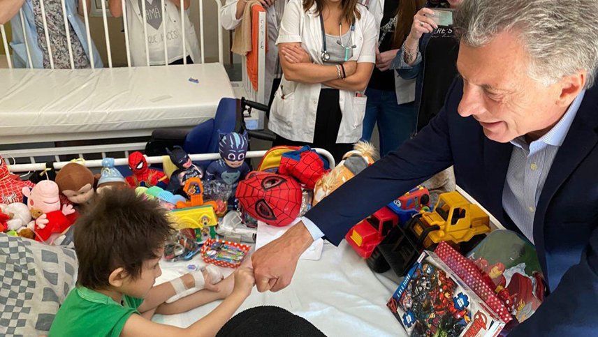 El dirigente del PRO se acercó al Hospital Pedro Elizalde (ex Casa Cuna) a pedido de la familia del niño y de Adriana, la cantante y animadora infantil que gestionó la visita del expresidente.