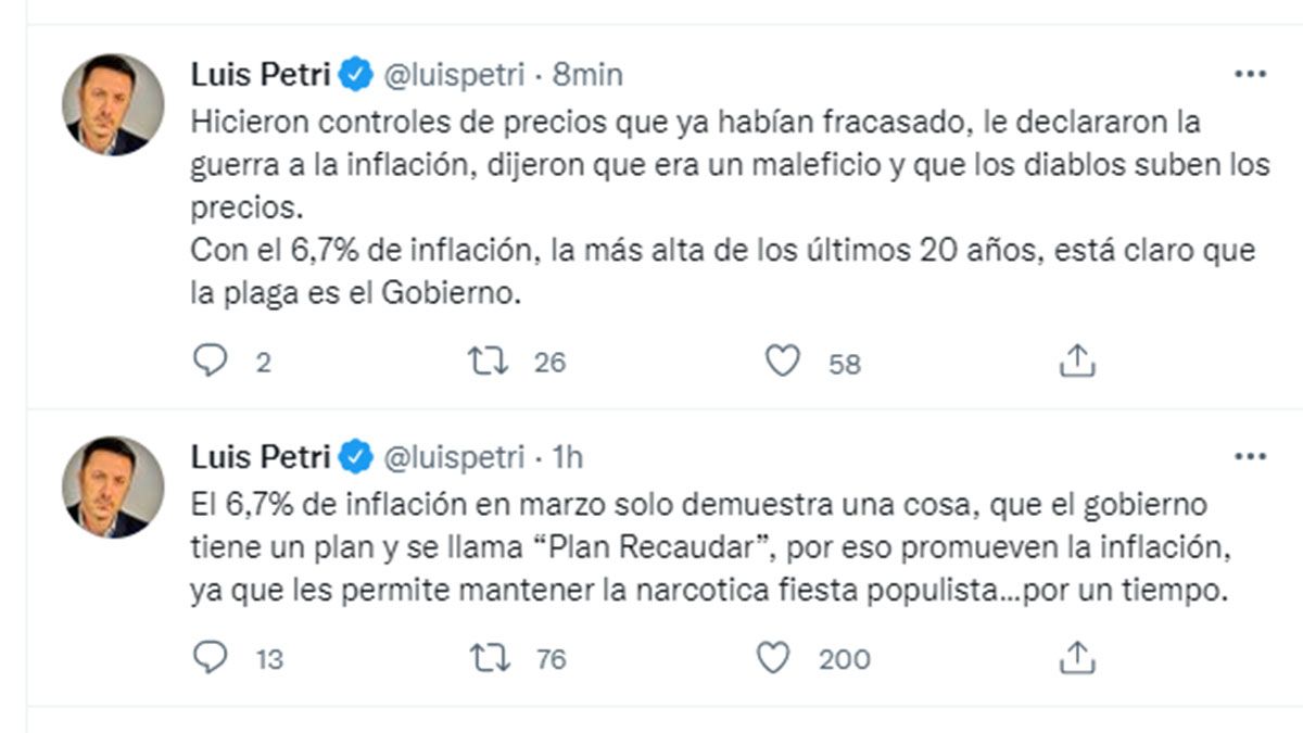 Otro que se subió al tren de las críticas fue el exdiputado radical Luis Petri, quien señaló que "el único plan" que tiene el Gobierno es, a su criterio, el "Plan recaudación":