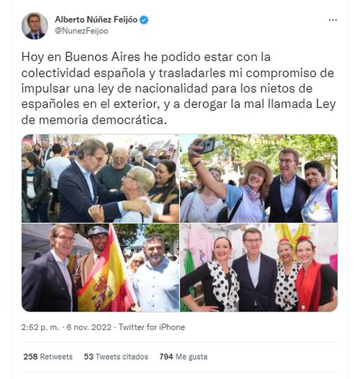 "A Macri y Larreta los conozco hace tiempo, desde que Macri fue intendente de la Capital. Larreta ha venido a verme a Madrid. No tengo el placer de conocer a Bullrich, pero lo tendré", remarcó Núñez Feijóo antes del encuentro.