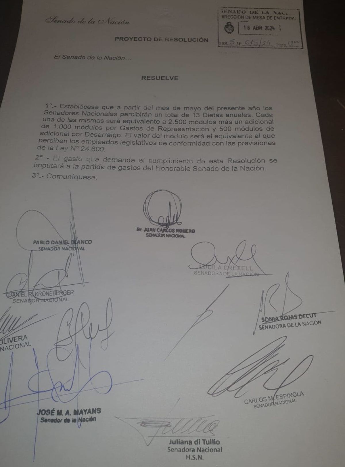 El documento presentado por Suarez y Juri apenas un par de horas después de que el Senado, por mayoría, aprobara los incrementos dice textualmente: