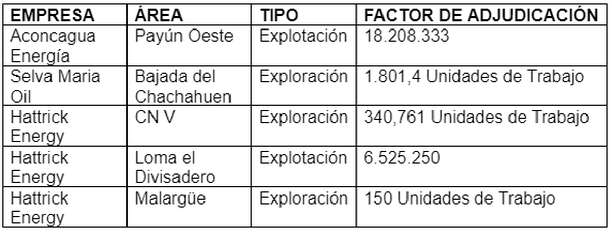 Las áreas se encuentran en Malargüe. Allí trabajarán las firmas Aconcagua, Selva María y Hattrick Energy, empresas que ya están operando en la provincia y que anteriormente habían mostrado interés en esos sectores.