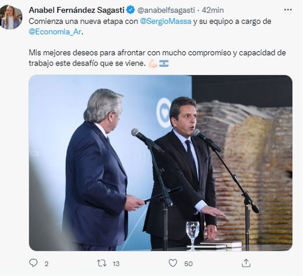 La senadora nacional y presidenta del PJ de Mendoza, Anabel Fernández Sagasti, envió sus saludos por redes sociales. "Mis mejores deseos para afrontar con mucho compromiso y capacidad de trabajo este desafío que se viene", escribió.