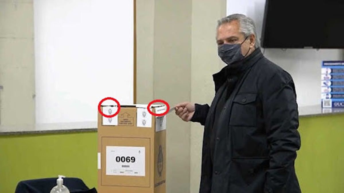 El presidente de la Nación, Alberto Fernández, votó esta mañana en la sede de la Universidad Católica Argentina (UCA) en Puerto Madero. Luego de que emitiera su voto, comenzó a circular en redes sociales una imagen del momento en el que el mandatario colocó el sobre dentro de la urna. Los posteos virales denuncian que las fajas de seguridad de la urna están rotas y señalan que se trata de una irregularidad dentro del proceso electoral.