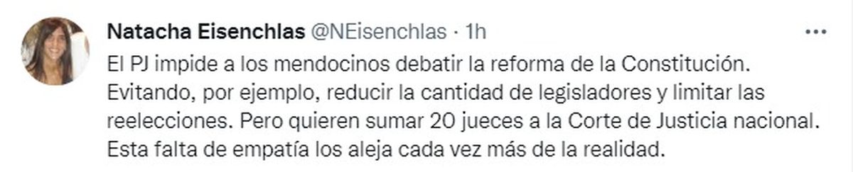 Una de las que opinó fuerte fue la senadora provincial y presidenta provisional del Senado, Natacha Eisenchlas (UCR), en claro contrapunto con el jefe del bloque del Frente de Todos en la Cámara Baja, Germán Gómez (PJ):