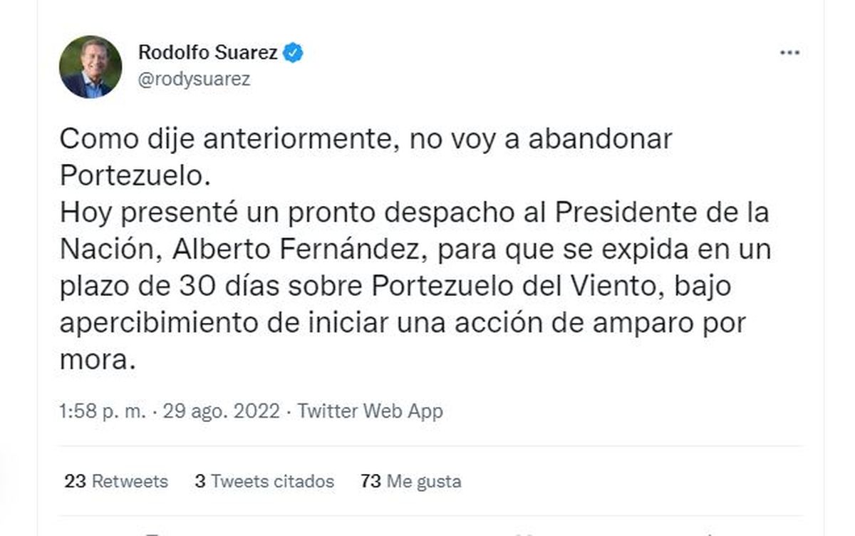 Suarez insistió y presentó un pronto despacho para que Alberto decida qué hará con Portezuelo
