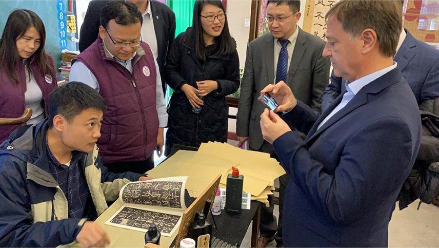 El gobernador electo Rodolfo Suarez, junto al ministro de Economía, Infraestructura y Energía, Martín Kerchner, y al director de ProMendoza, Mario Lázzaro, se interiorizaron sobre el modelo y funcionamiento de la educación inicial y media en China.
