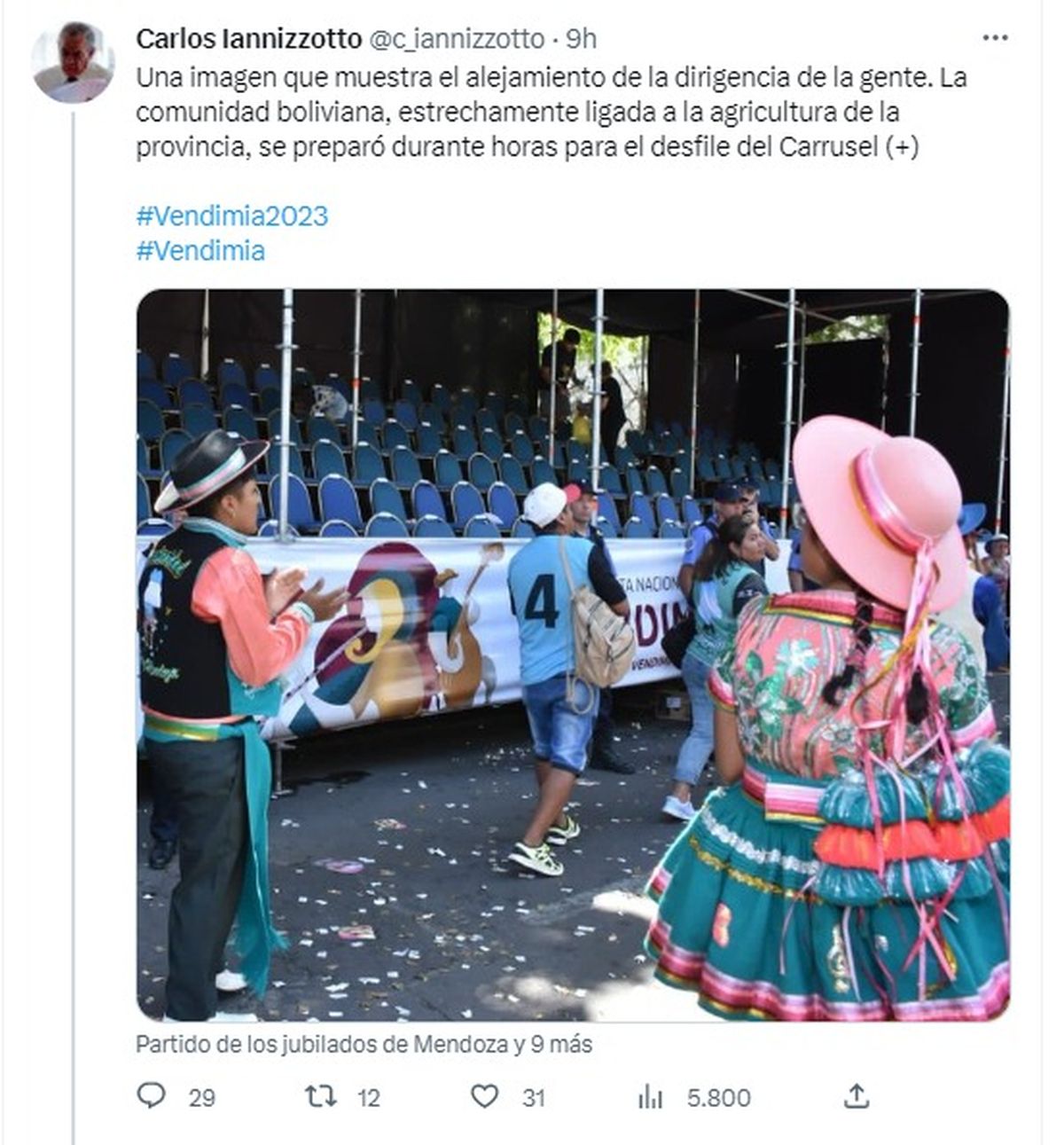 El posteo se viralizó y las críticas hacia los políticos se multiplicaron. Horas más tarde, Carlos Iannizzotto -expresidente de Coninagro y referente de la fuerza Encuentro por Mendoza- recogió el tema y también destinó dardos contra la dirigencia local.