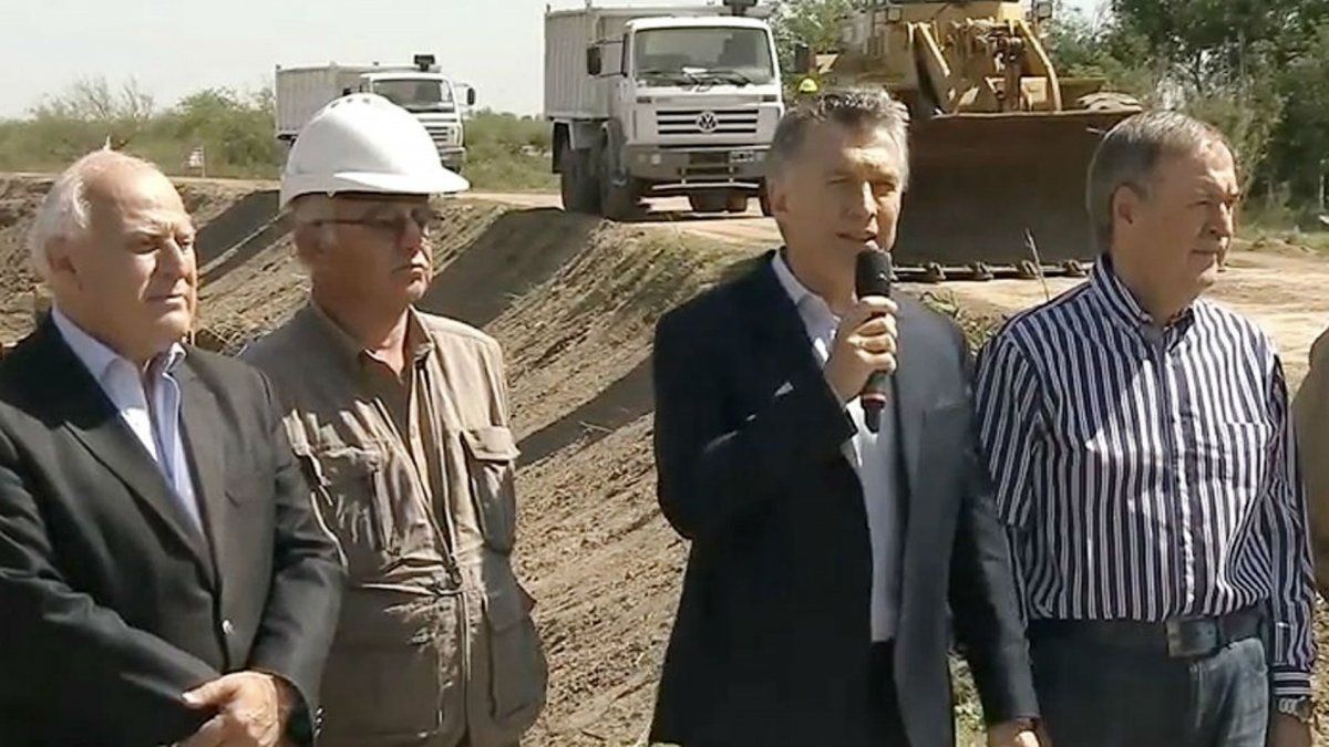 El jefe de Estado anunció que, "después de 40 años", comienzan las obras en el canal San Antonio, al encabezar la puesta en marcha de las obras hídricas en la localidad santafesina de Tortugas, acompañado por los gobernadores de Santa Fe, Miguel Lifschitz y de Córdoba, Juan Schiaretti.