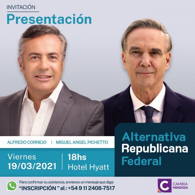 Eso explica que dentro de su agenda en Mendoza, los organizadores de la visita de Pichetto convoquen también a una reunión que se hará el mismo viernes a la tarde en el hotel Hyatt, a las 18, de la cual participará el diputado nacional y presidente de la UCR, Alfredo Cornejo.
