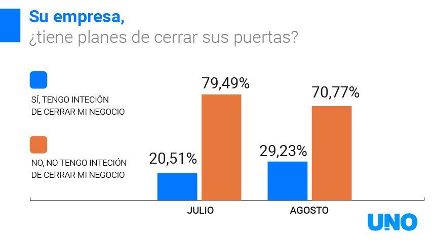 Del 20,51% que eran en julio pasaron al 29,23% a fines de agosto, lo que supone que de las 101 encuestadas son 30 las firmas que bajarían las persianas.