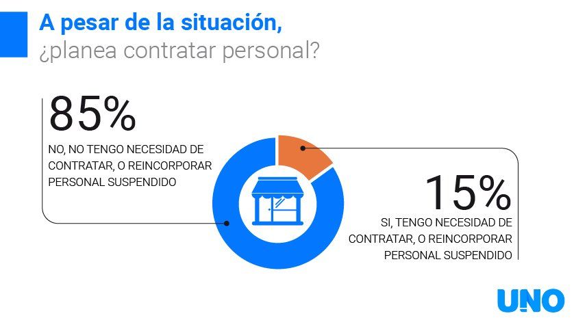 La perspectiva que avizoran esos comerciantes no parece alentadora y es por eso que el 84,62% asumió que no tiene necesidad de contratar o reincorporar personal suspendido.