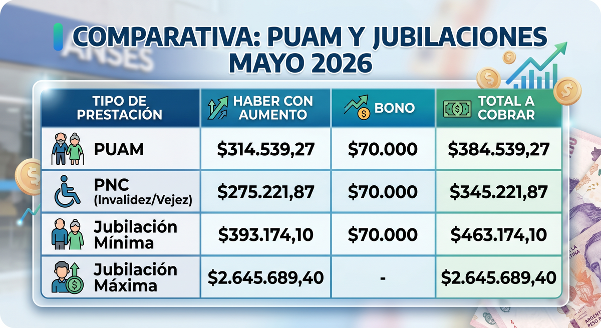- Haber máximo de mayo: Trepará a los $2.646.201,22, lo que representa un incremento neto de más de $87.000 para quienes perciben el techo del sistema.