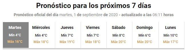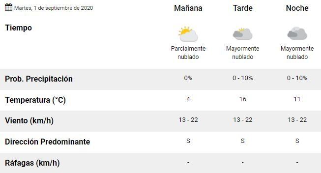 La temperatura máxima esperada para este martes es de 13°C, mientras que la mínima descenderá hasta los 3°C. Se espera que en los próximos días se eleven las temperaturas máximas, con las mínimas manteniéndose en la misma línea.