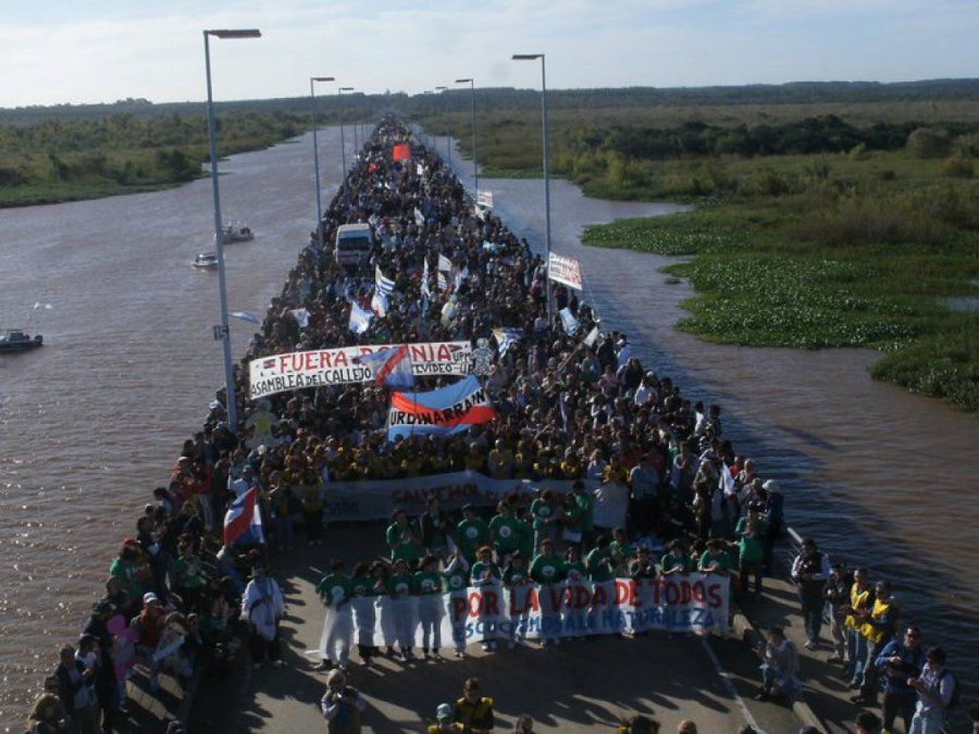 Los ambientalistas de Gualeguaychú realizaron numerosas protestas desde 2003 en contra de la instalación de la pastera, e incluso mantuvieron cortado casi un año entre 2006 y 2007 el acceso al puente del lado entrerriano por la ruta 136.
