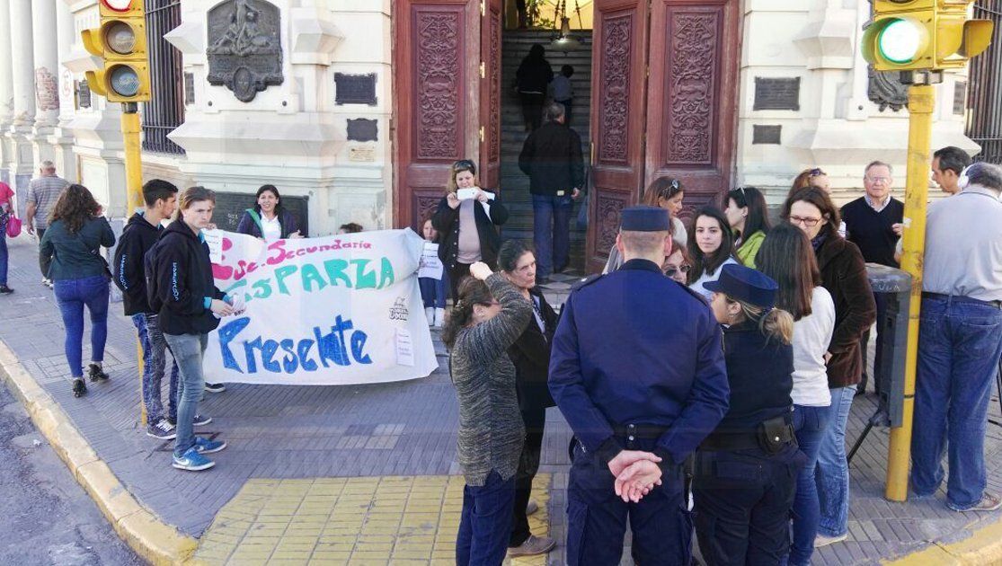 Vecinos autoconvocados de Paraná en defensa del Parque Nuevo se manifestaron frente a la Municipalidad de Paraná. Piden a los ediles no avalar que se destinen nueve hectáreas del paseo público para creación de un Polo tecnológico. La escuela Esparza formó parte del reclamo.