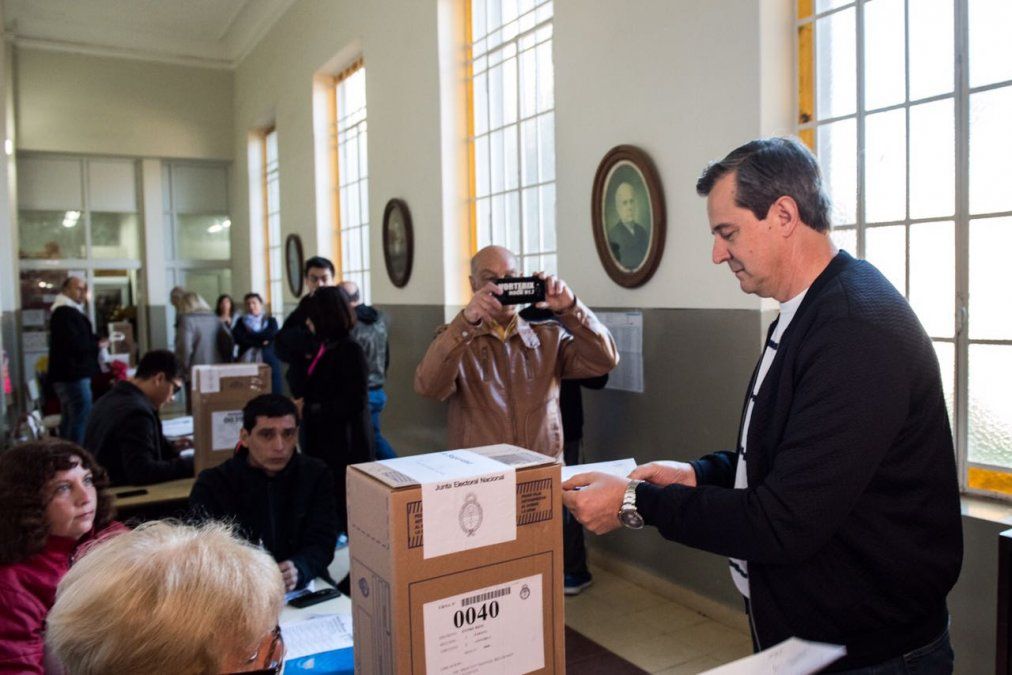 Acompañado de su hijo mayor, el vicegobernador emitió su voto en la mesa 40 de la escuela N° 5 Manuel Belgrano de la ciudad de Paraná.
