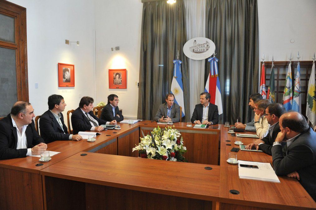 En el Salón Mujeres Entrerrianas, el primer mandatario entrerriano, junto al vicegobernador Adán Bahl, al ministro de Economía, Hugo Ballay, y al secretario de Hacienda, Gustavo Labriola, mantuvo una reunión de trabajo con los presidentes de los bloques de Senadores provinciales del Frente para la Victoria, Angel Giano, y de Cambiemos, Raymundo Kisser. También estuvieron presentes los titulares de los bloques de Diputados provinciales del Frente para la Victoria, Juan José Bahillo; de Cambiemos, Sergio Kneeteman, del Frente Renovador, Gustavo Zavallo, y de Unión Popular-Frente Renovador, Alejandro Bahler.