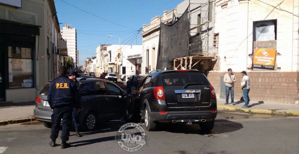 Dos automóviles chocaron hoy al mediodía en la esquina de Libertad y Perú, a tres cuadras de la peatonal San Martín, en el centro de Paraná, y el tránsito estuvo un poco más convulsionado que lo normal.