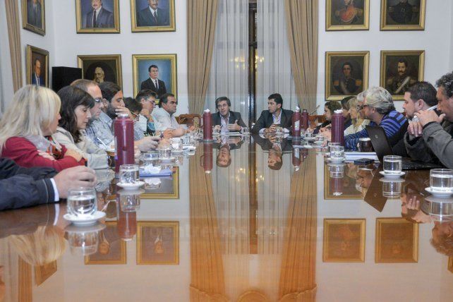 A la reunión asistieron el ministro de Economía, Hugo Ballay y el presidente del CGE, José Luis Panozzo, por el Gobierno. En tanto, por el Frente Sindical estuvieron Fabián Peccín, César Pibernus, Adriana Vilchez y Juan Carlo