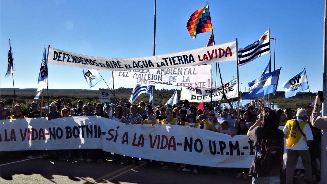 Vecinos de Gualeguaychú marcharon el domingo, junto a la Asamblea Ambiental Ciudadana, hasta el puente Internacional General San Martín en protesta contra el funcionamiento de la fábrica de pasta de celulosa UPM-Botnia en la ciudad uruguaya de Fray Bentos, a la que acusan de provocar una "fuerte contaminación" en el limítrofe río Uruguay. La jornada de protesta se realizó bajo el lema "Sí a la vida y no al saqueo y contaminación", y contó con el apoyo de la municipalidad de Gualeguaychú. En un escrito, el movimiento ambiental aseguró: "Hoy, venimos al puente convertido ya en tribuna de nuestras protestas contra todo tipo de contaminación y particularmente contra empresas de las corporaciones saqueadoras, cuya máxima representación en nuestro suelo es Botnia-UPM".