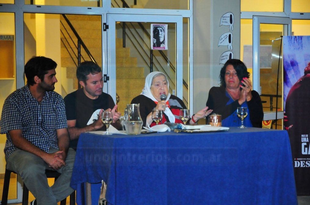 La presidenta de Madres de Plaza de Mayo, Hebe de Bonafini, encabezó este viernes una charla en el patio de la Facultad de Trabajo Social de la UNER, en la cual se refirió a la historia de la organización que encabeza y a la militancia de los desaparecidos durante la última dictadura militar.
