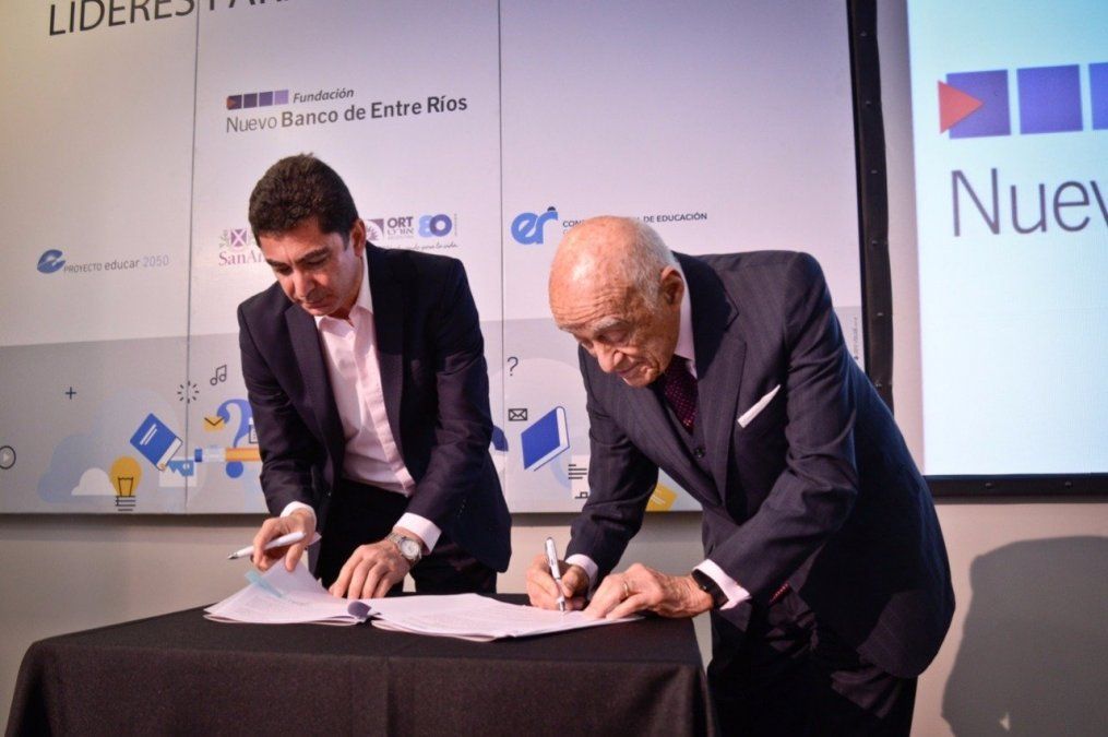 El acto de formalización del programa fue encabezado por el presidente de la Fundación Nuevo Banco de Entre Ríos, Enrique Eskenazi, y el presidente del Consejo General de Educación de la provincia, José Luis Panozzo, y contó con la presencia del Gerente General del Nuevo Banco de Entre Ríos, Miguel Malatesta; entre otras autoridades del NBER y del CGE.