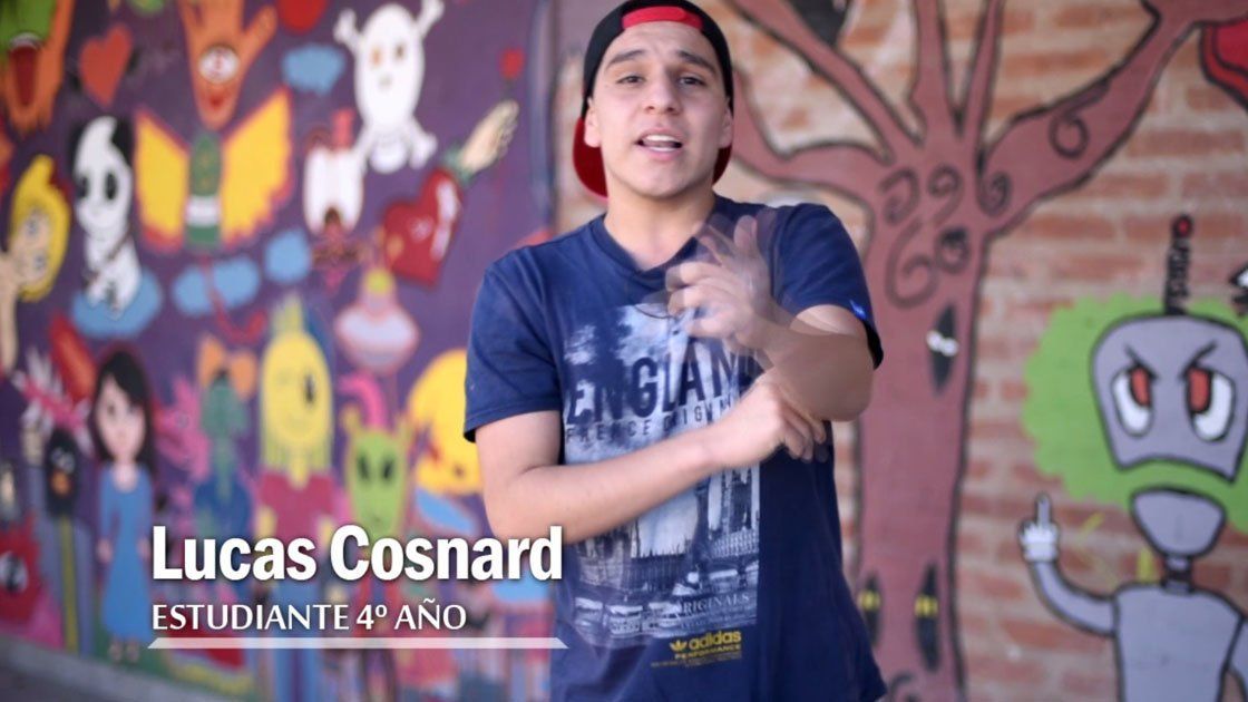 "Bienvenidos a la Guadalupe. Acá representamos el rap, y lo estamos haciendo cultura. 'Salimos de la escuela a hacer marcha de protesta, para que esta escuela esté mejor, para que la escuela sea mejor. Para que los nenes aprendan la lección, que la escuela se tiene que respetar, que a la escuela se tiene que venir a estudiar..." rapea e improvisa con solvencia Lucas Cosnard, alumno de 4° A de la escuela N° 28 Nuestra Señora de Guadalupe.