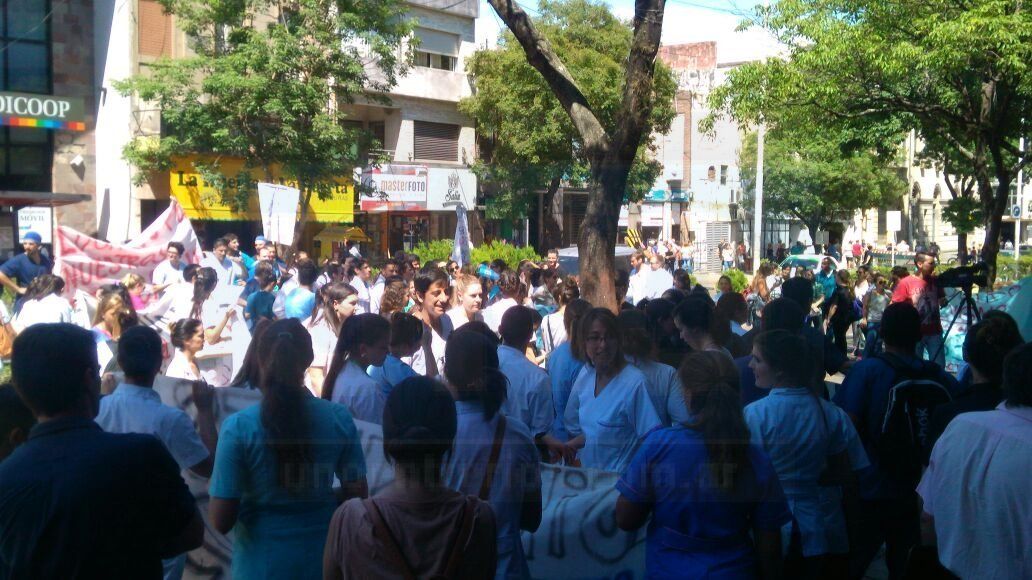 En Paraná, decenas de profesionales marcharon desde el hospital San Martín, hasta Salud y desde allí a Casa de Gobierno. Denuncian precarización laboral.