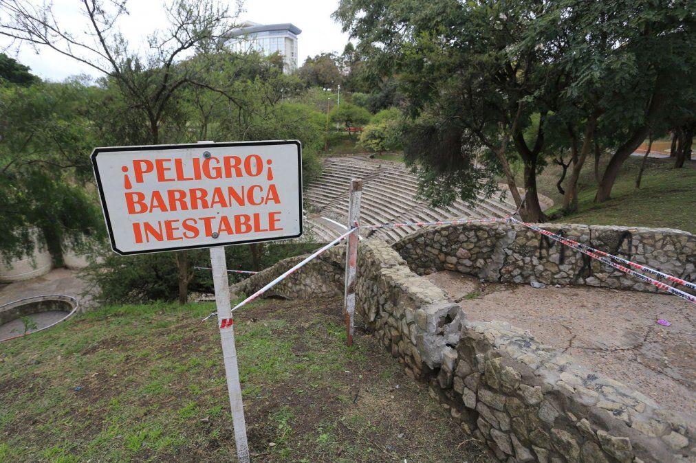 Construido en la depresión natural conocida como Boca del Tigre, el anfiteatro es un sector más que está sufriendo y se va deteriorando con el paso del tiempo. La falta de obras de mantenimiento en el emblema de la capital provincial se ha traducido en derrumbes, que exigen luego inversiones mayores. Y hay también escalinatas que se interrumpen abruptamente, por haber sido parte de ellas arrastradas por la barranca -como en sectores cercanos a calle Estrada-, o con quiebres y desniveles en el resto de otros tramos peatonales.