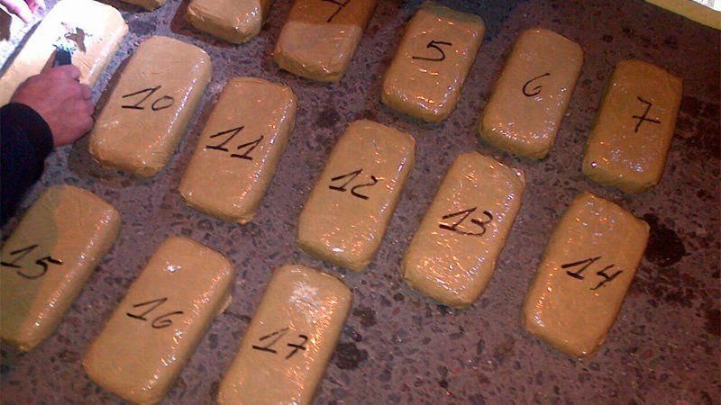Se procede al Secuestro de 26 bultos comúnmente denominados "panes" o "ladrillos" conteniendo una sustancia verdosa, la cual es sometida a una "Prueba de Campo" determinando que se trataba de marihuana, arrojando un peso aproximado a los 24 kg. Además se secuestró un Celular y una Balanza Electrónica.