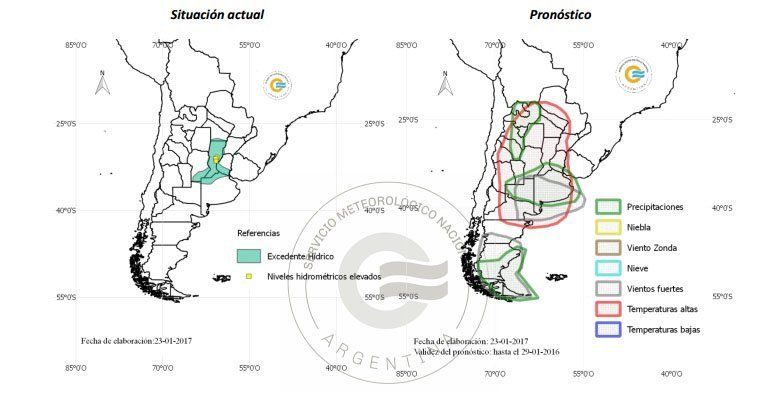 El Servicio Meteorológico Nacional (SMN) informó que continuarán las altas temperaturas "durante toda la semana desde el norte de Patagonia hacia el norte del país, con una breve interrupción entre el martes 24 y jueves 26 con el pasaje de un frente frío. Desde el jueves 26, rápido incremento nuevamente de la temperatura en el norte y noroeste del país y especialmente en el norte de la Patagonia y centro del país donde puede superar los 40 °C el día viernes 27".