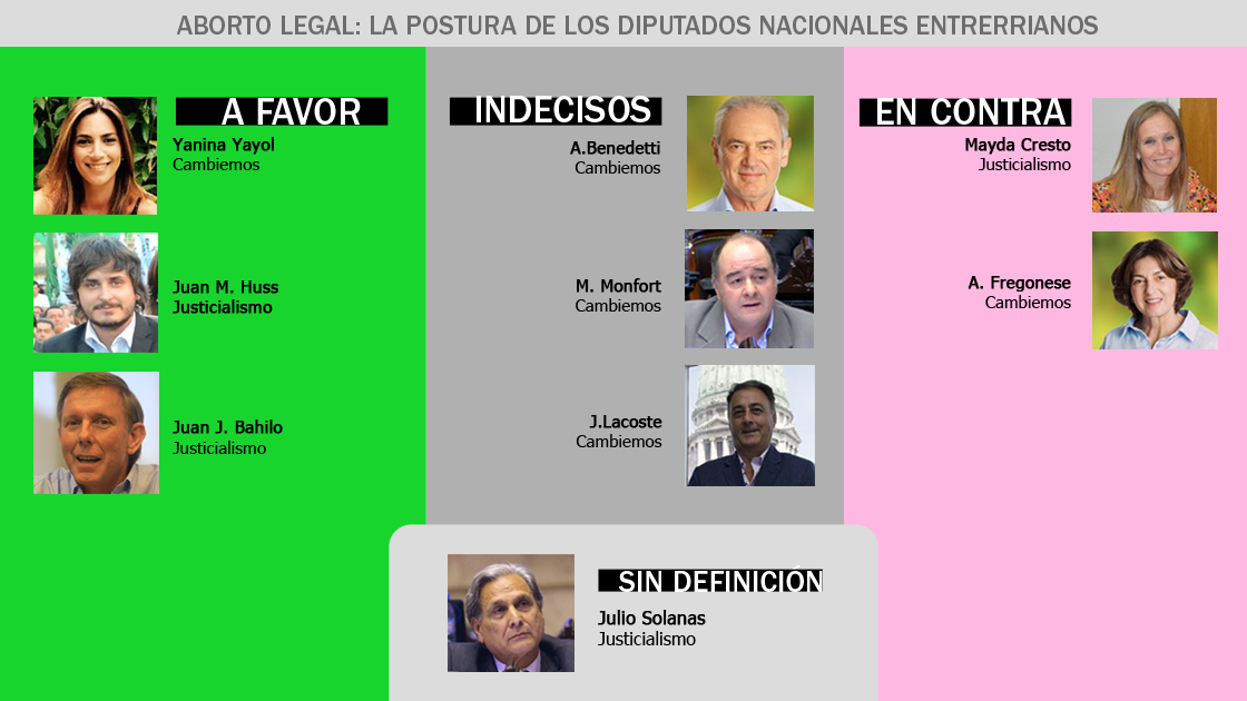 En cuanto a la labor parlamentaria, la Cámara baja se apresta a firmar un dictamen consensuado y se espera que el 13 de junio, en medio de una reñida sesión, se arribe a una definición histórica. Entre los nueve diputados que representan a la provincia de Entre Ríos también existe disparidad de opiniones, incluso algunos de ellos adelantaron que recién definirán su voto en las horas previas a la sesión.