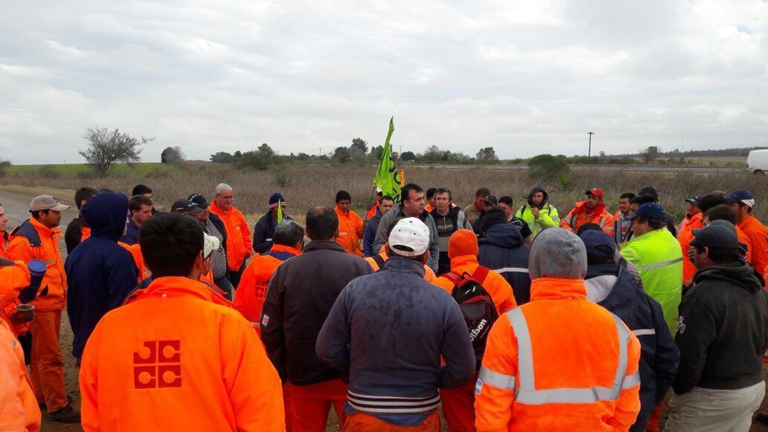 Trabajadores de Viale suspendidos por la empresa Cartellone continuaron ayer con una medida de fuerza exigiendo que se reanude la obra que se está llevando a cabo en la ruta 18 y haya una inmediata resolución al conflicto.