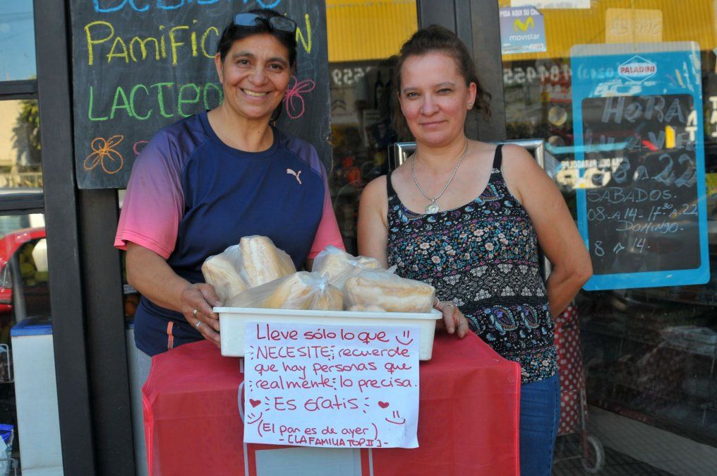 Desde hace un par de semanas, Irma Jacquier, propietaria de una despensa situada en Carbó 961, en Paraná, saca a la vereda unas bolsitas con pan, facturas, bizcochos y bollitos. Las coloca en una canasta, sobre unos cajones de plástico prolijamente apilados para que queden a la vista de quien pasa, con un cartel con enormes letras rojas que dice "Lleve solo lo que 'necesite'; recuerde que hay personas que 'realmente' lo precisa. Es gratis (El pan es de ayer)".