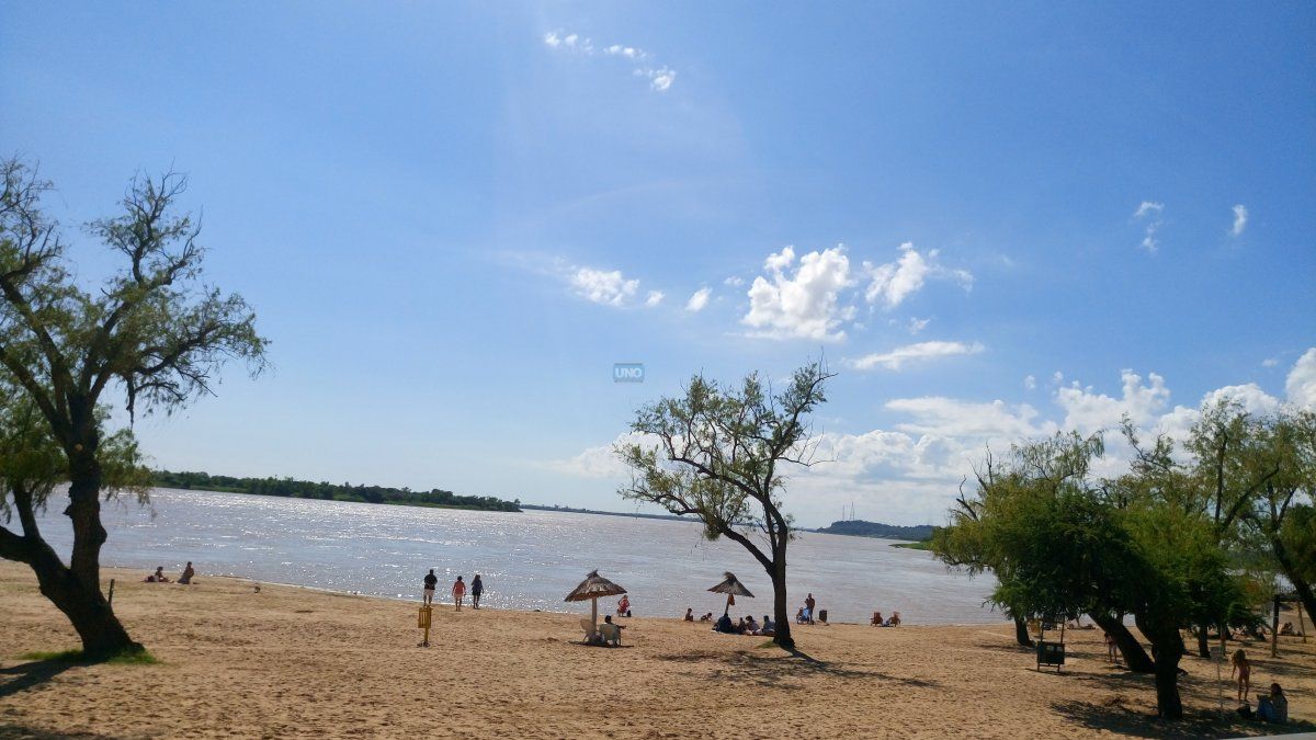 Aprovechando las altas temperaturas, una buena cantidad de turistas visitaron la playa del balneario Municipal de Paraná.