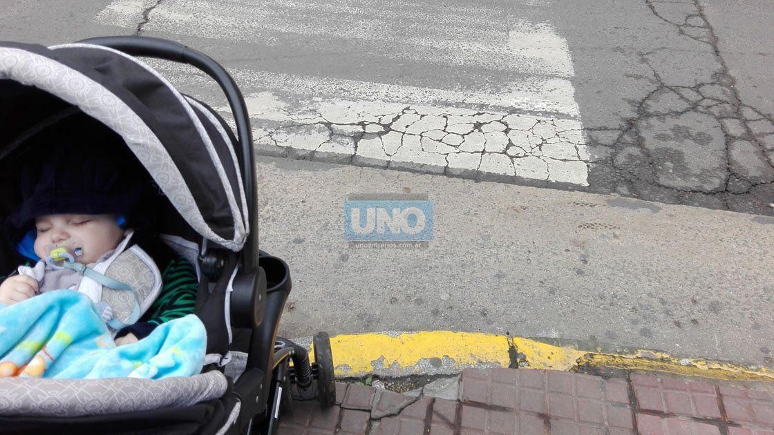 Acompañamos a Beltrán, un bebé paranaense de cinco meses, en su recorrido diario hasta el jardín maternal al que asiste, en la zona céntrica de Paraná. UNO hizo un recorrido de diez cuadras, y experimentó lo que vive una mamá que transita apurada por cumplir horarios.Arremeter con el cochecito, hacer palanca, tratar de sacar la rueda de un pozo, evitar baldosas flojas, tener en cuenta las veredas rotas o desniveladas por las raíces de los árboles, caminar por la calle para evitar obreros trabajando; motos estacionadas en la vereda, excremento de perros, comerciantes que no cumplen con los horarios de descarga de mercadería, puestos callejeros y mesas de bares, son algunos de los obstáculos más comunes.