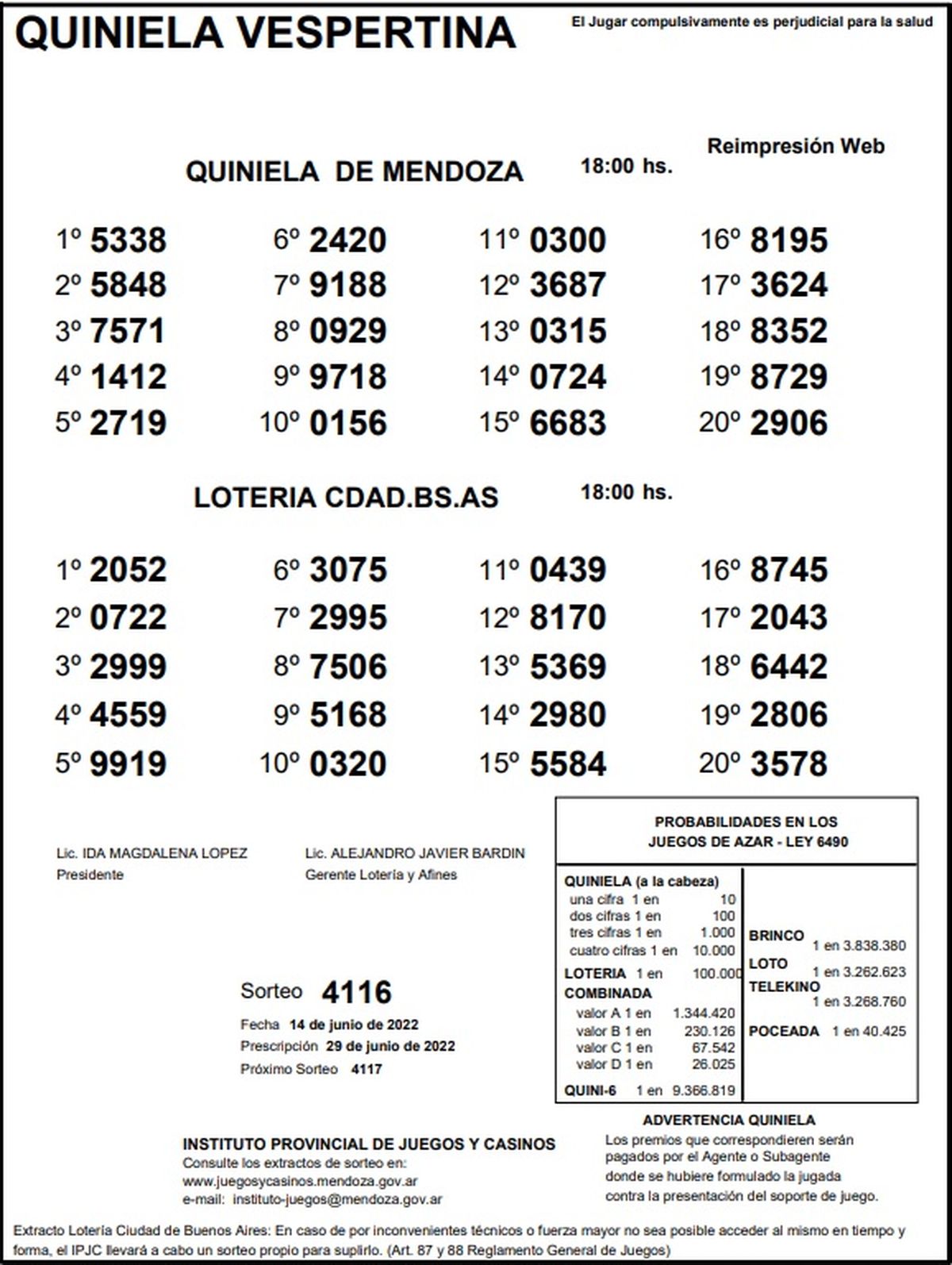 Quiniela de Mendoza: resultados de la Vespertina de hoy, 14 de junio