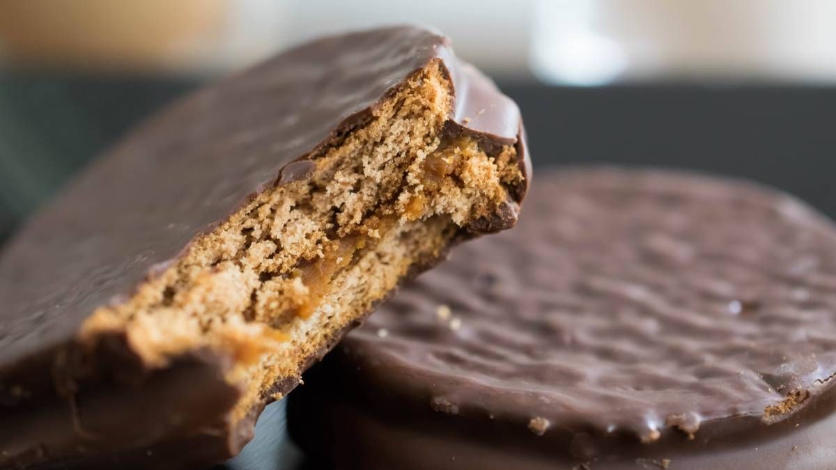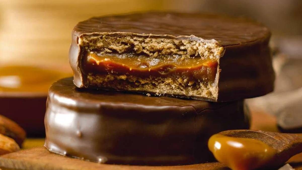 Estos alfajores típicos de Argentina y otros países de América Latina consisten en dos galletas suaves y tiernas, rellenas de dulce de leche y cubiertas con una capa de chocolate cobertura.