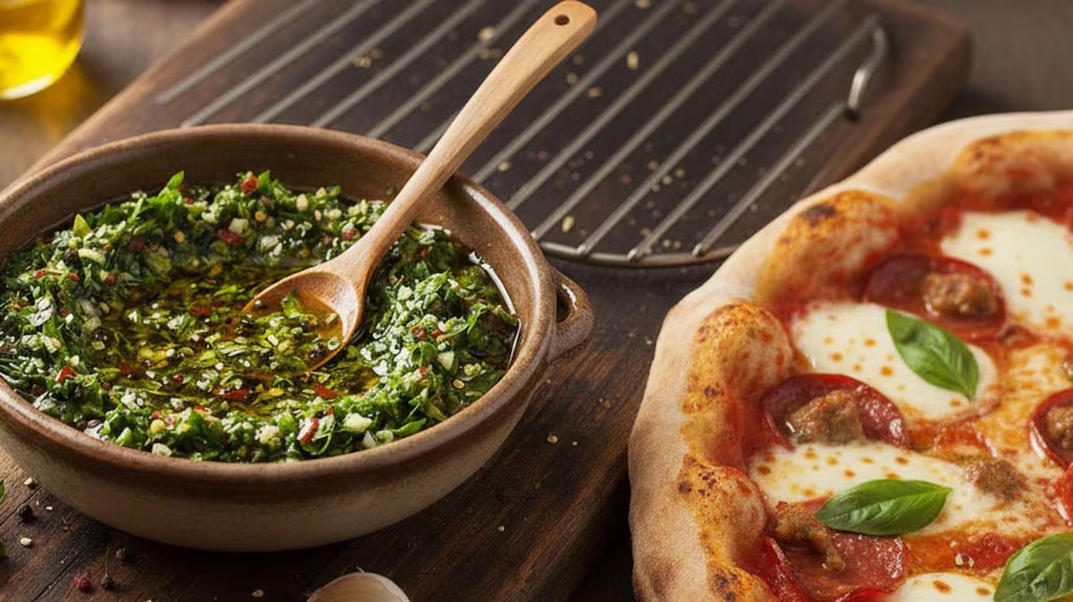 Hablar de pizza en Argentina es hablar de una receta que nos convoca cualquier día de la semana. Ya sea al molde, a la piedra, a la parrilla o al horno de barro, hay un elemento que separa a una pizza rica de una verdaderamente inolvidable: el chimichurri.