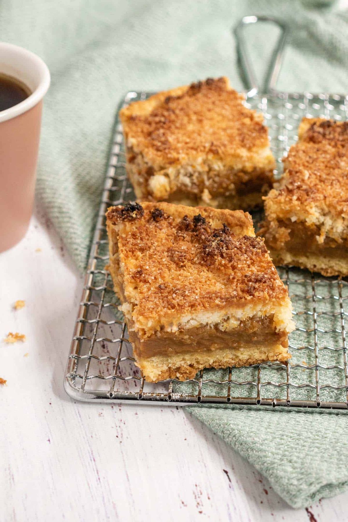 ¡Listo! Ya tienes unos deliciosos Cuadraditos de coco y dulce de leche para compartir en el desayuno, la merienda o el postre. Puedes acompañar esta receta de tu infusión favorita, como el mate o el café.