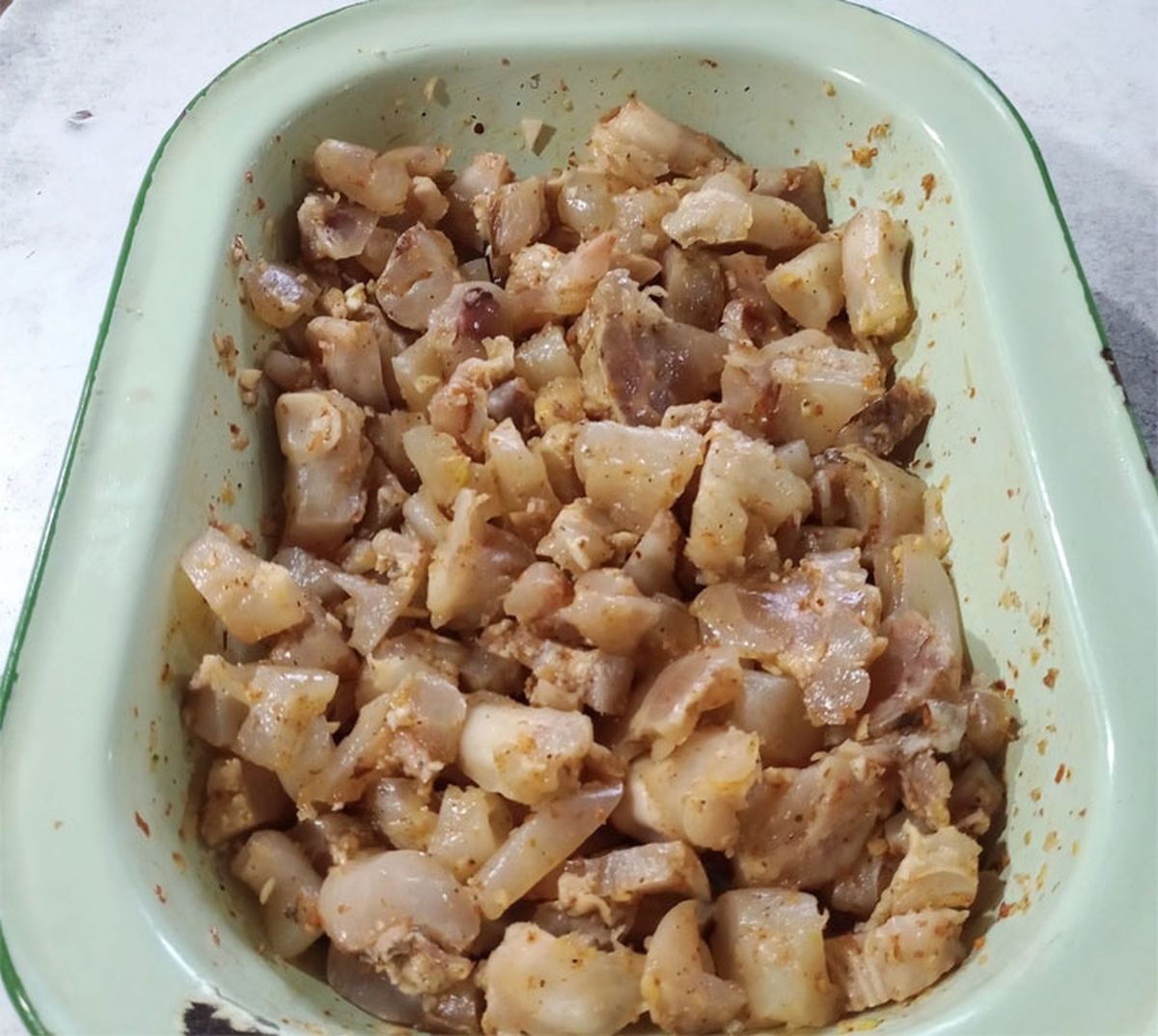 - Verter esta salsa bien condimentada sobre las patitas de cerdo, para luego incorporarle el ají y el perejil picado, para que se potencien los sabores.