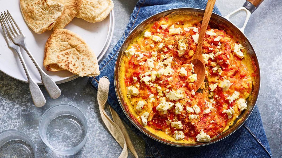 - Para finalizar, apaga el fuego y agrega queso feta desmenuzado. Espolvoréa orégano y sirve caliente o tibio, acompañado de pan casero o pan pita.