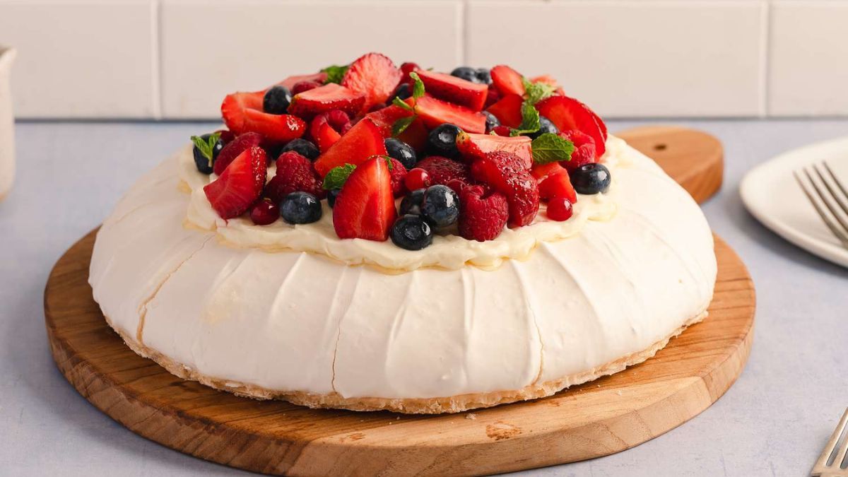La pavlova es un postre que combina una base de merengue crujiente con una capa de crema batida y una generosa cantidad de frutas frescas, como frutillas o arándanos. Se trata de una de las recetas más frecuentes en las cartas de cafeterías y restaurantes de todo el mundo.