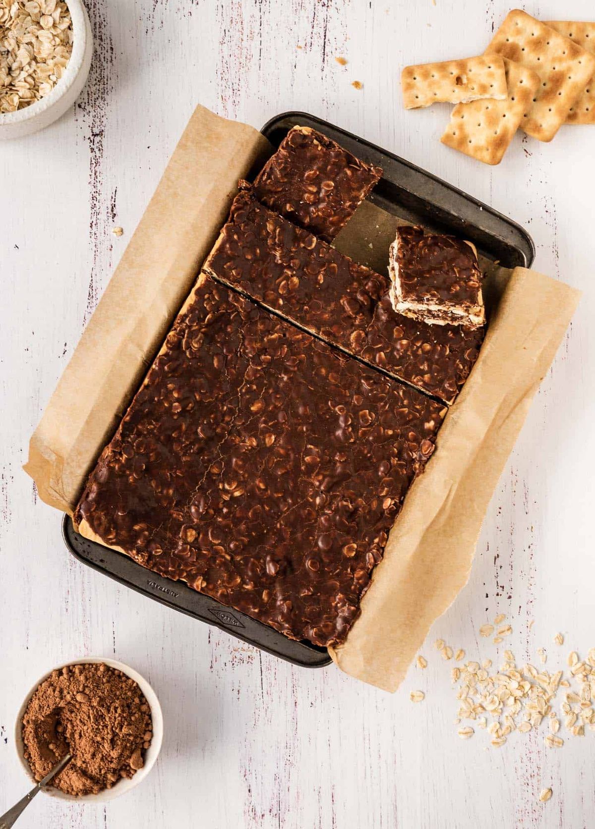 - Termina el turrón de avena con una capa de preparación y llevá a la heladera por una hora, o reserva en el freezer por unos minutos.