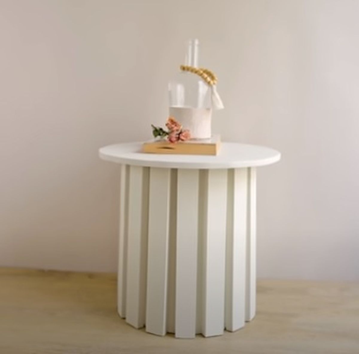 Después toma la tabla de madera de forma circular y pégala en la parte superior del balde de pintura, de esa manera la mesa ratona tomará forma. Luego pinta bien toda la mesa con pintura blanca o del color que más te guste y deja secar. Por último, dale una capa de protección y listo, te quedará una hermosa mesa ratona para decorar tu hogar.