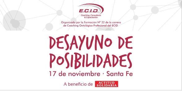 En este encuentro, coordinado por la 22ª formación de ECID, se compartirán conceptos del coaching ontológico, que son de suma importancia para expandir la capacidad de acción, en distintos ámbitos de la vida. Al finalizar el desayuno, los organizadores solicitarán una donación voluntaria en efectivo, que será contada y entregada a la Fundación en el momento, ante un escribano público.