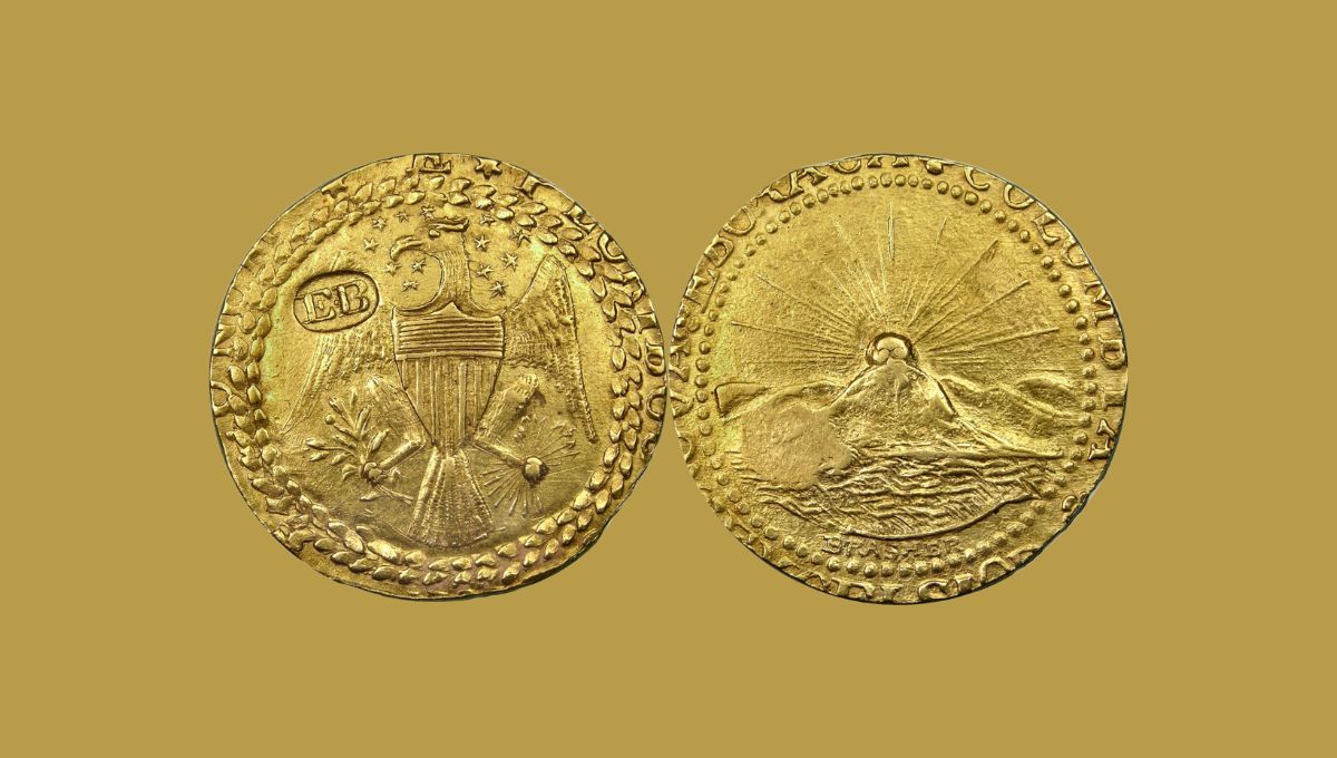 Con una rareza extrema, esta moneda de oro fue acuñada en 1787 por Ephraim Brasher, un orfebre que contribuyó a la creación de las primeras monedas de la nación independiente.